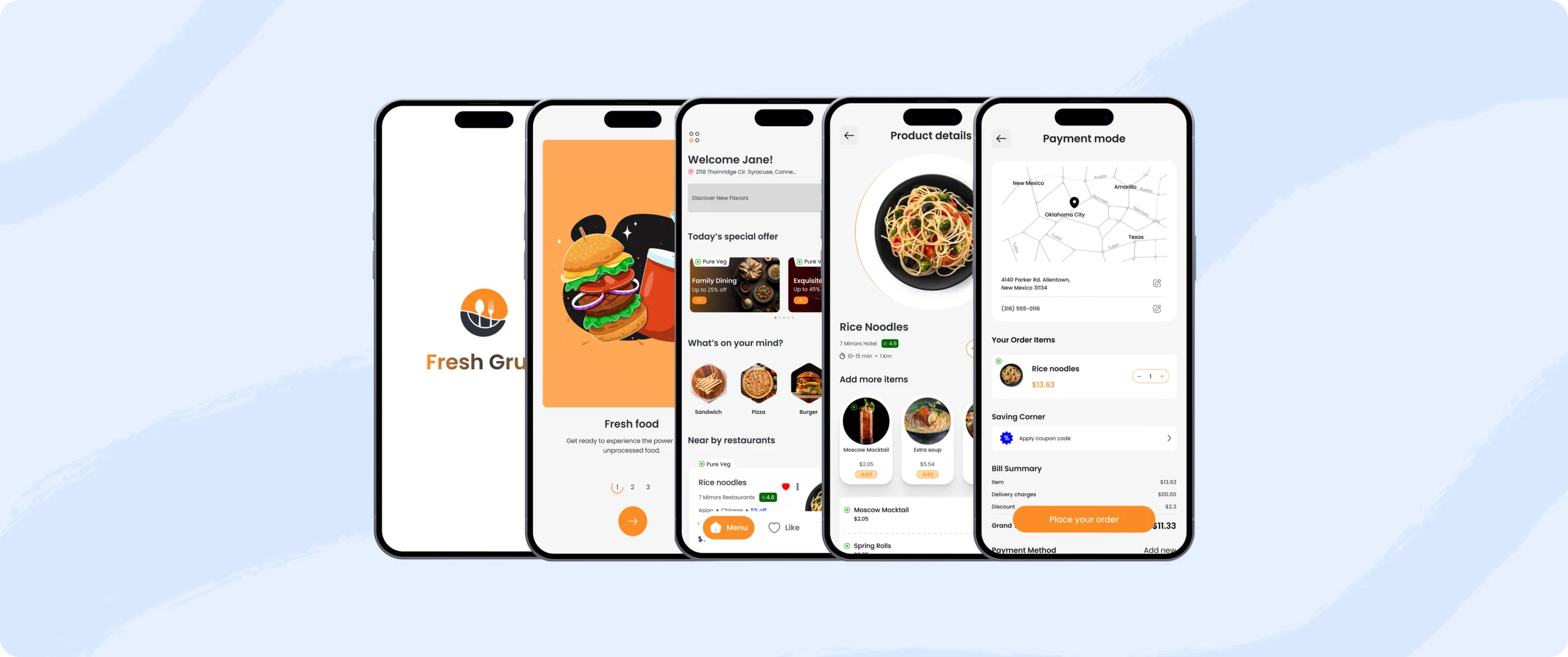 Fresh-Grub is a food delivery app designed to create an effortless culinary journey, connecting users with their favorite meals. The core design challenge was to build a user-friendly interface that transforms how people discover and order food, making the satisfaction of any craving just a single tap away. The project goal was to deliver a seamless, fast, and delightful experience from browsing to delivery.